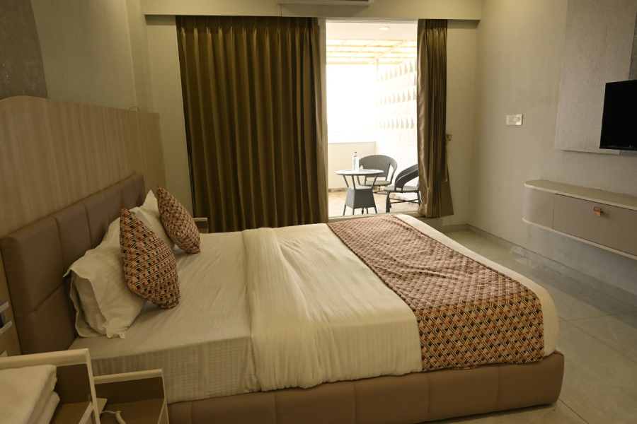 Our Super Deluxe Rooms at Hotel Shree Khodal are designed for comfort and relaxation. Each room features elegant interiors, cozy bedding, modern furnishings, and a soothing ambiance. Guests enjoy essential amenities, well-lit and clean spaces, and attentive room service, making these rooms ideal for business, leisure, or family stays. Experience a perfect blend of style, convenience, and tranquility during your visit.