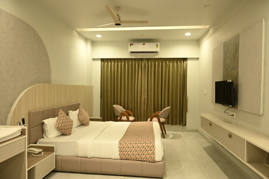 Our Super Deluxe Rooms at Hotel Shree Khodal are designed for comfort and relaxation. Each room features elegant interiors, cozy bedding, modern furnishings, and a soothing ambiance. Guests enjoy essential amenities, well-lit and clean spaces, and attentive room service, making these rooms ideal for business, leisure, or family stays. Experience a perfect blend of style, convenience, and tranquility during your visit.